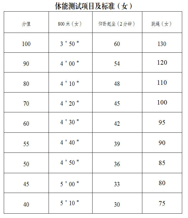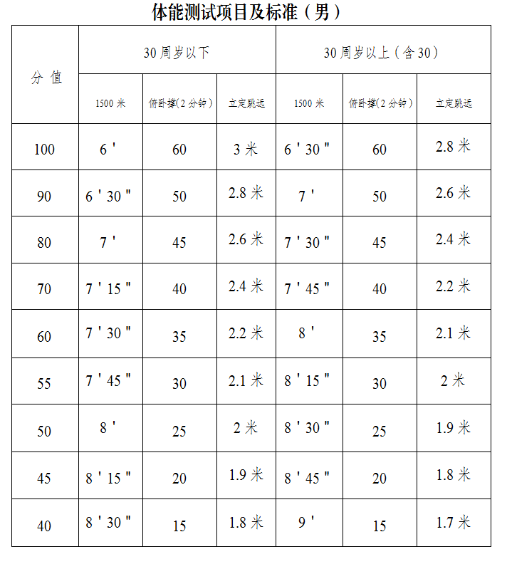 (2)體能測試項目及標(biāo)準(附件3)。